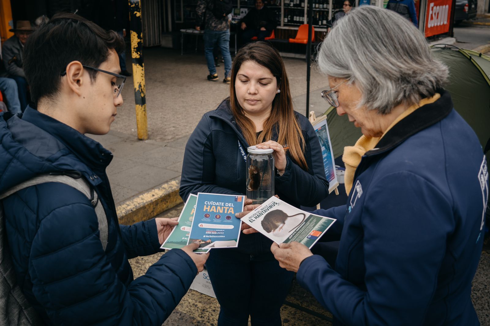 Equipos de la Seremi de Salud llegaron hasta el Terminal de Talca para educar a la comunidad sobre la prevención de la enfermedad que transmite el ratón de cola larga.