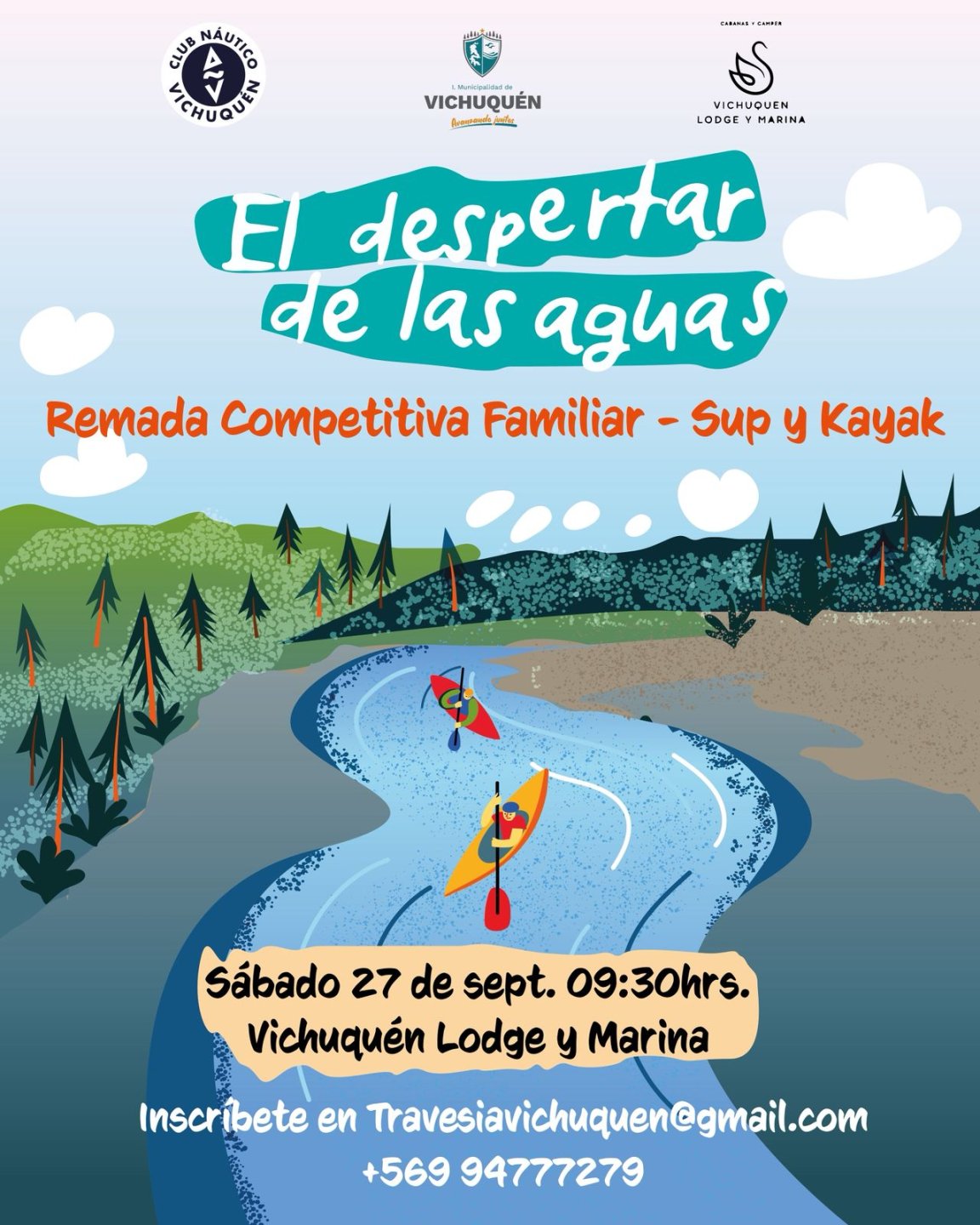 El Club Náutico de Vichuquén, junto a la Municipalidad local, invita a toda la comunidad a participar de la Remada Competitiva Familiar de Sup y Kayak “El despertar de las aguas”. La actividad se llevará a cabo este sábado 27 de septiembre en el Vichuquén Lodge Marina, con el objetivo de promover el deporte, la recreación y el encuentro familiar.