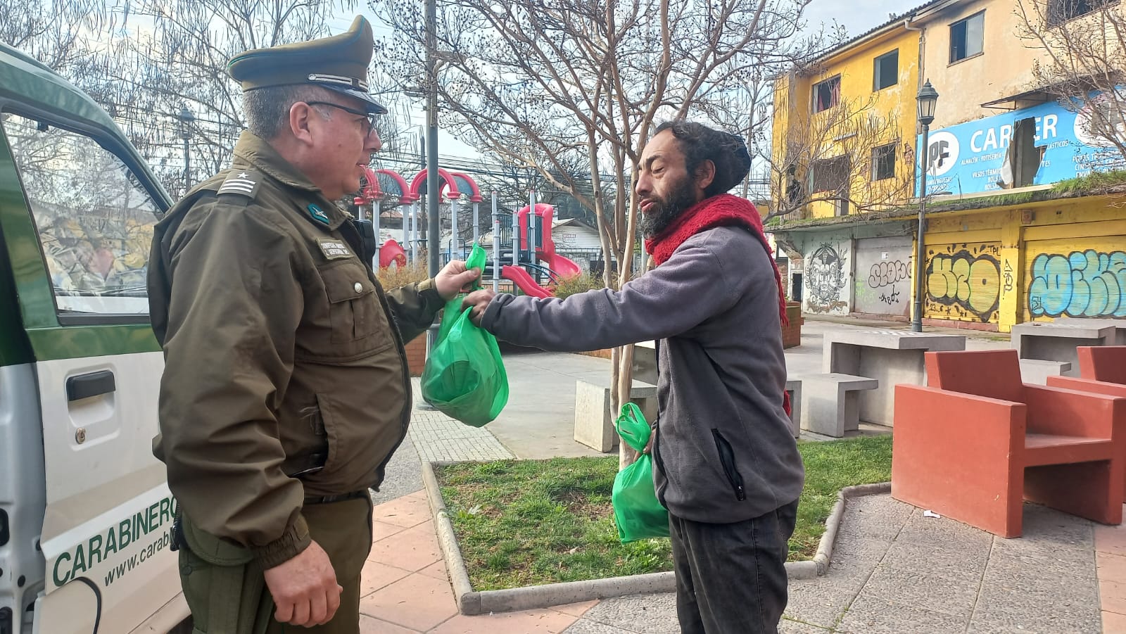 Carabineros entrega kit de alimentos a personas en situación de calle en Talca