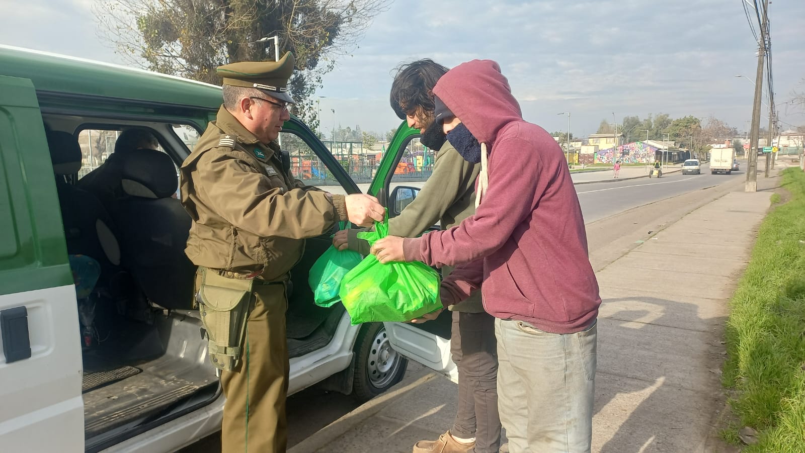 Tras convenio de colaboración y transferencia de recursos entre el Ministerio de Desarrollo Social y Familia, la Junta Nacional de Auxilio Escolar y Becas (Junaeb) y Carabineros es que nuevamente este año, la institución uniformada, es la encargada de entregar diariamente kit de alimentos a personas en situación de calle de Talca.