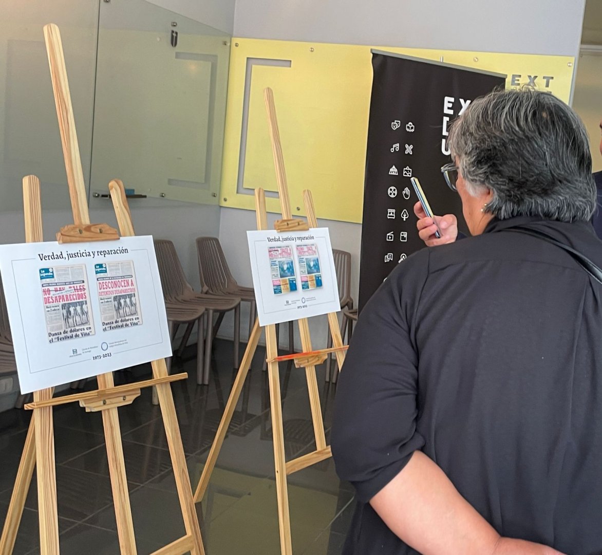 Además de convocar a la charla, Mujeres por la Memoria inauguró una muestra titulada “Portadas corregidas: Reparación de titulares negacionistas en dictadura”, en el Centro de Extensión de la Universidad Católica del Maule.