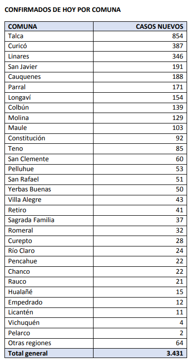 El Maule registró más de 3 mil nuevos casos de Covid-19 y 13 fallecidos